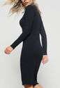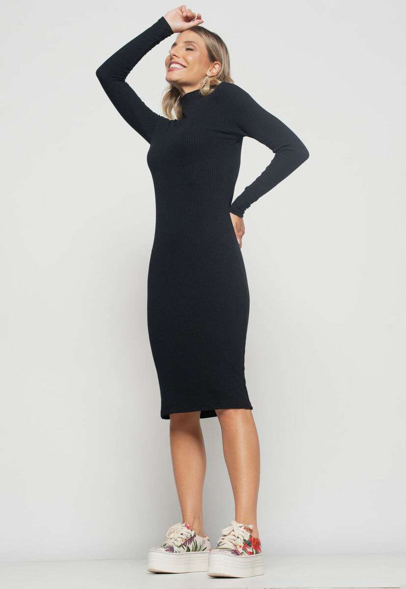 Vestido Midi Manga Longa Canelado Preto