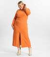 Vestido Midi Plus Size Manga Longa Secret Glam Laranja