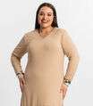 Vestido Midi Plus Size Manga Longa Secret Glam Marrom