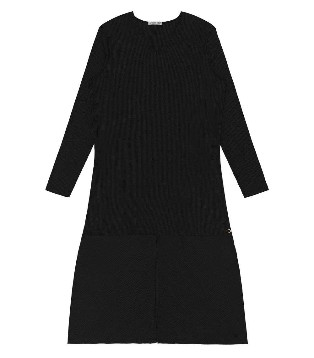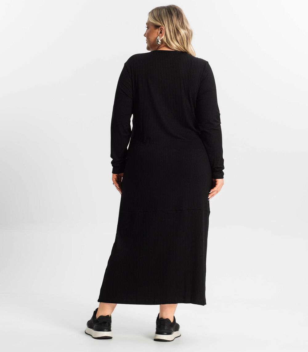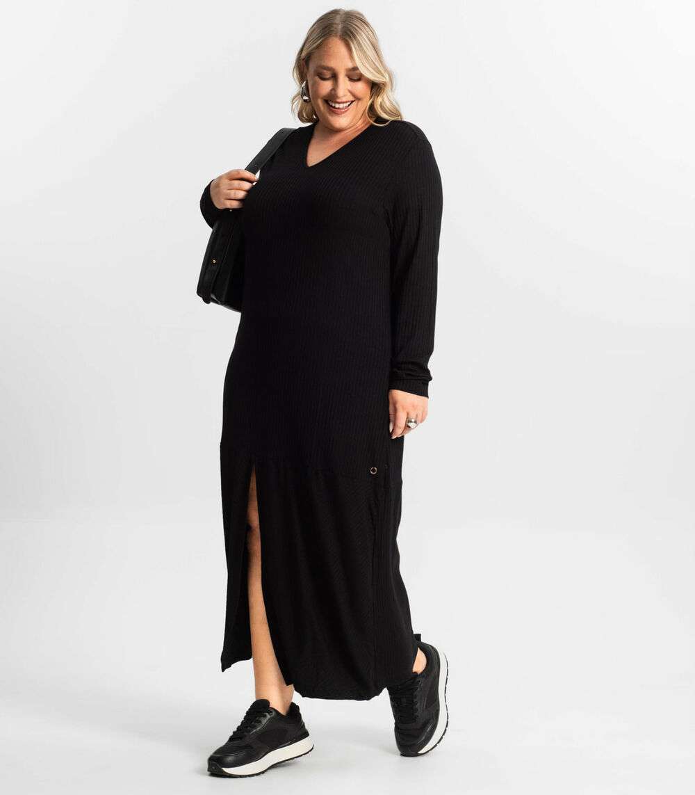 Vestido Midi Plus Size Manga Longa Secret Glam Preto