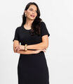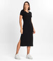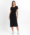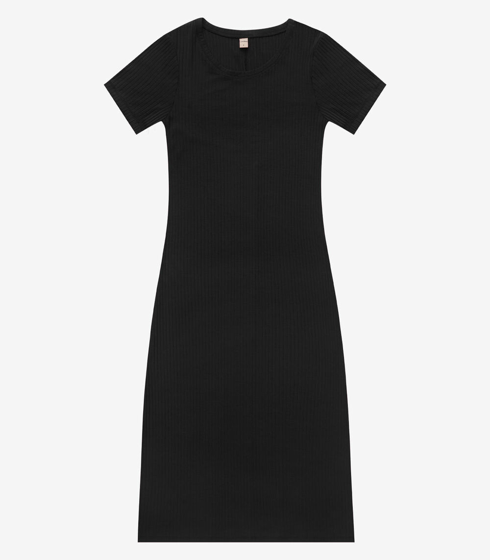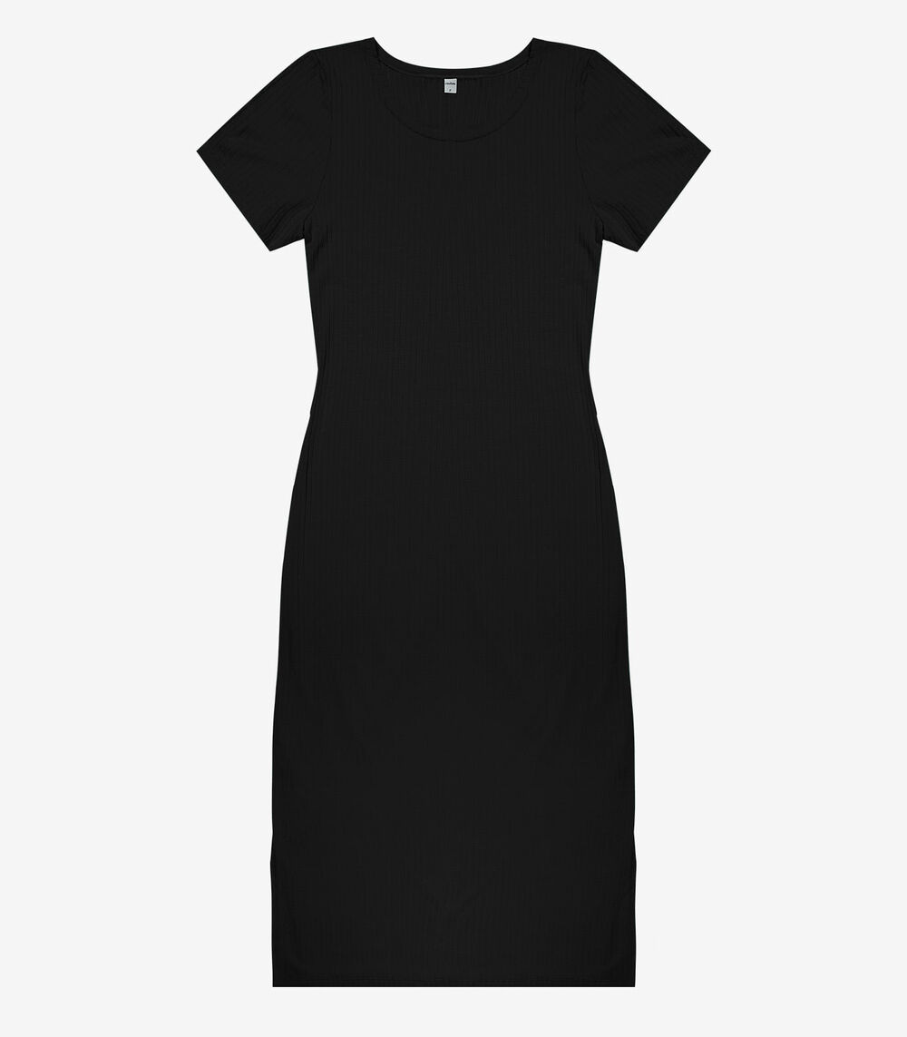 Vestido Midi Ribana Canelada Básico Rovitex Preto
