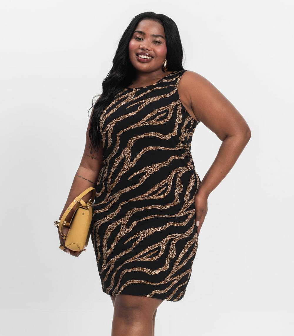 Vestido Plus Size Estampado Infinita Cor Preto