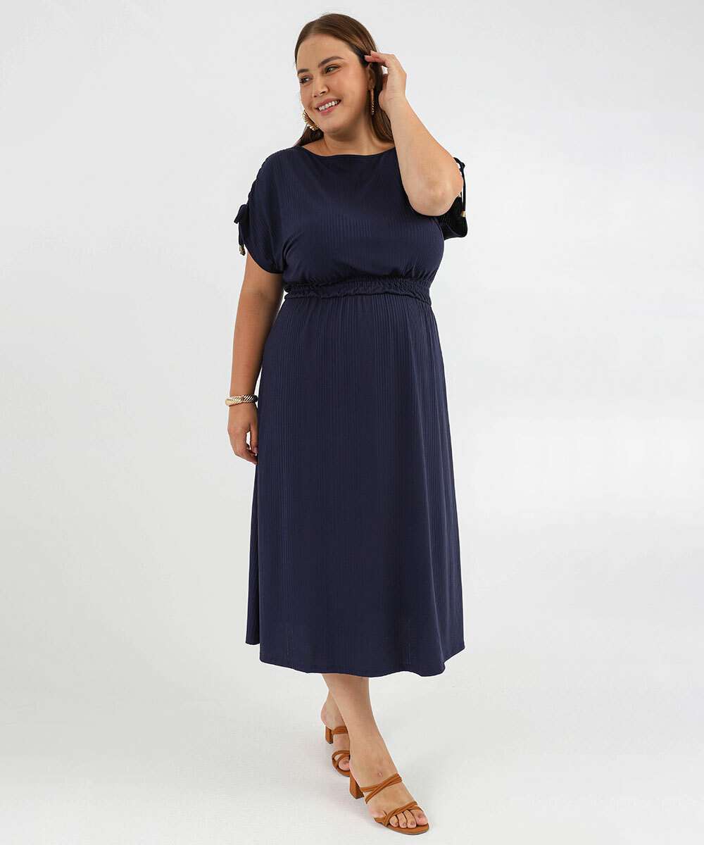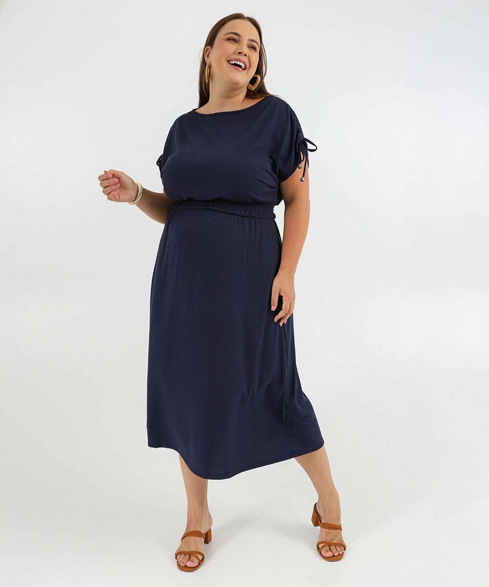 Vestido Plus Size Feminino Midi Canelado Colissê Marisa Azul