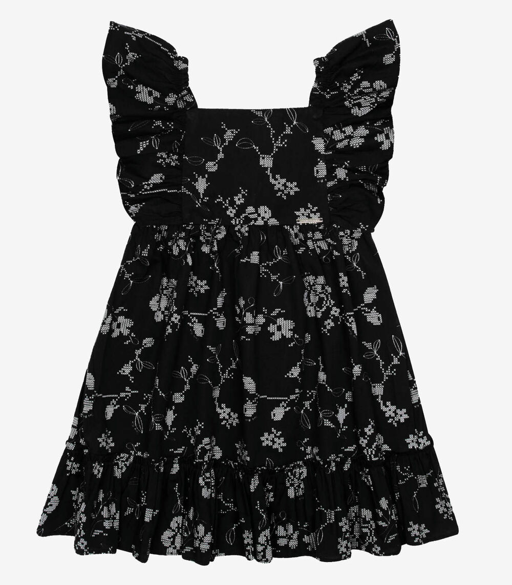 Vestido Popeline Floral Bordado Trick Nick Preto
